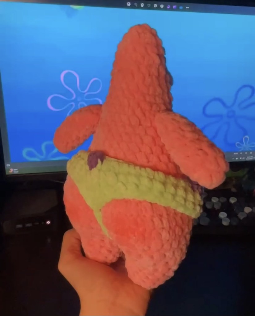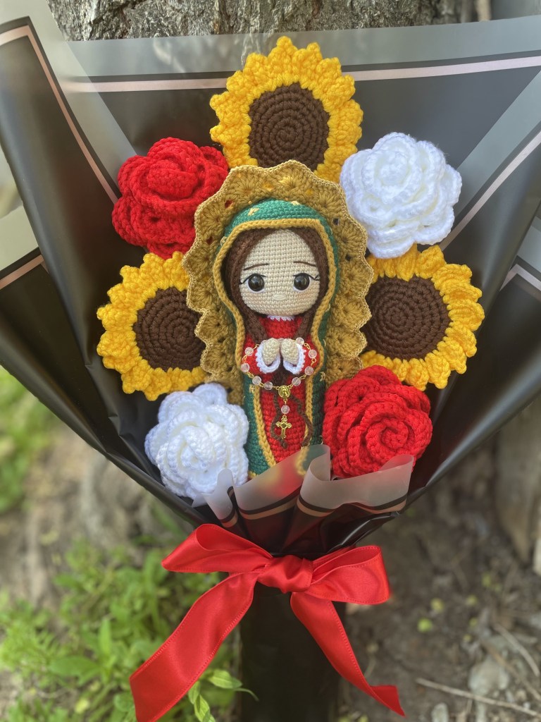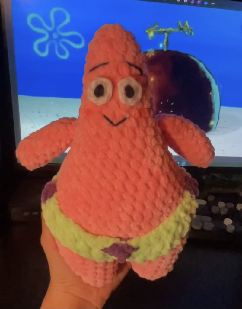 She has made many creations, but her favorite one she has made so far is a Virgin Mary doll inside a bouquet of flowers. The weirdest thing she has ever made is Patrick Star with a cute rump.